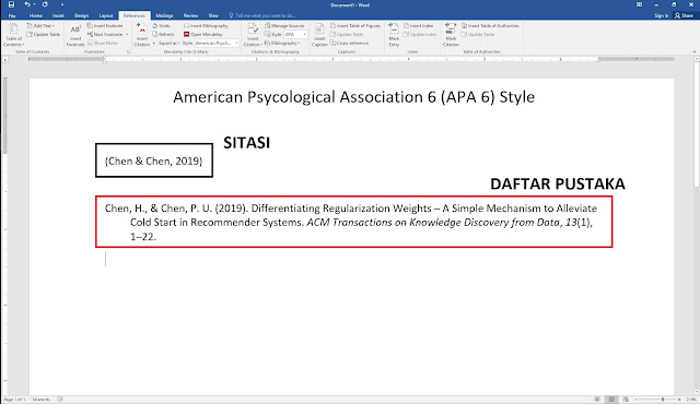 Untuk Insert Citation atau memasukkan sitasi ikuti langkah-langkah berikut: